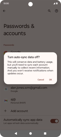 Press the indicator next to "Automatically sync app data" to turn the function on or off.