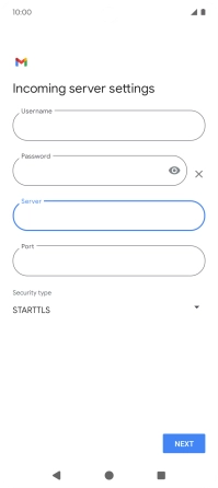 Press the field below "Server" and key in the name of your email provider's incoming server.