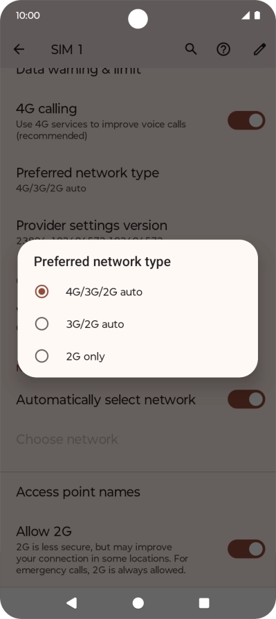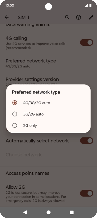 Press Preferred network type.