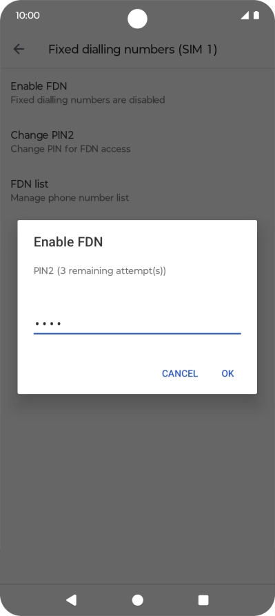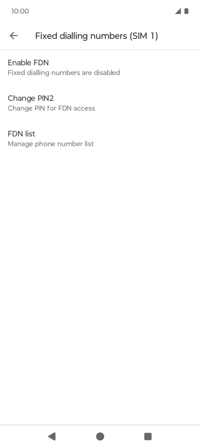 Press Enable FDN to turn on fixed dialling.