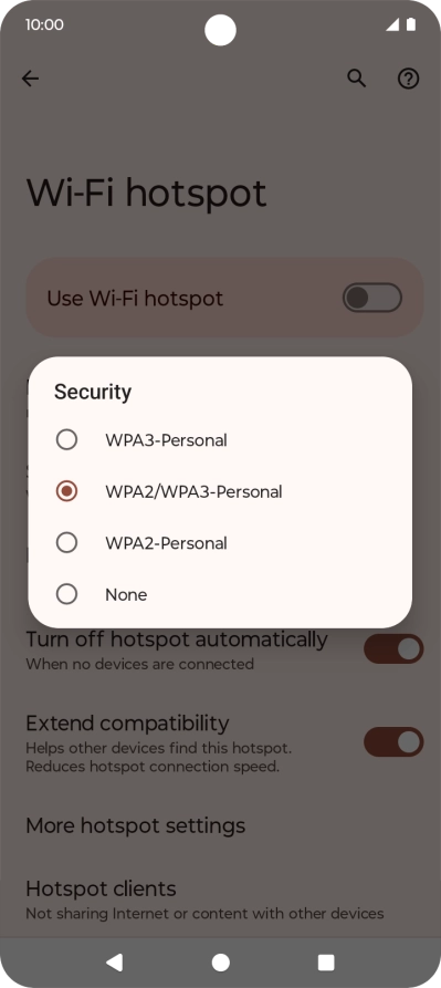 Press WPA3-Personal to password protect your Wi-Fi hotspot.