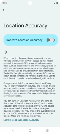 If you press the indicator next to "Improve Location Accuracy" to turn off the function, your phone can find your exact position using the GPS satellites but it may take longer as there is no access to supplementary information from the mobile network or nearby Wi-Fi networks.