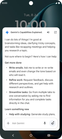 Say "What can you do?" to see more examples of voice control commands from Gemini.