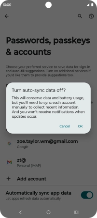 Press the indicator next to "Automatically sync app data" to turn the function on or off.