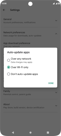 To turn on automatic update of apps using Wi-Fi, press Over Wi-Fi only.