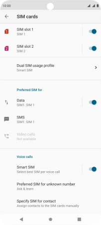 Press the indicator next to the required SIM to turn use of the SIM on or off.