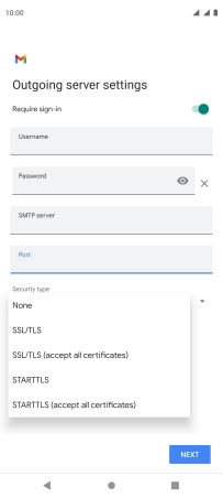 Press the field below "Username" and key in the username for your email the email provider's outgoing server.