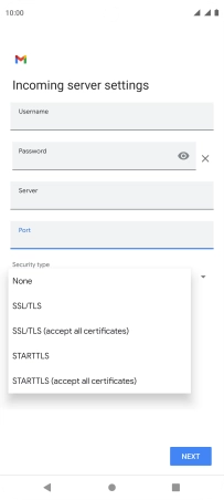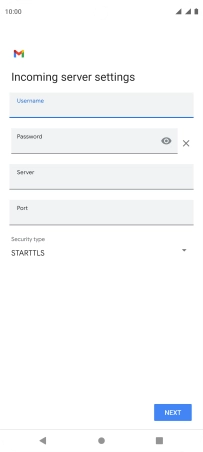 Press the field below "Server" and key in the name of your email provider's incoming server.