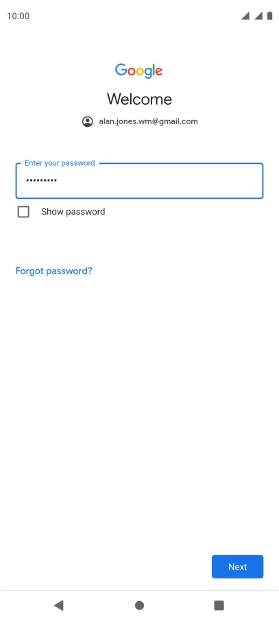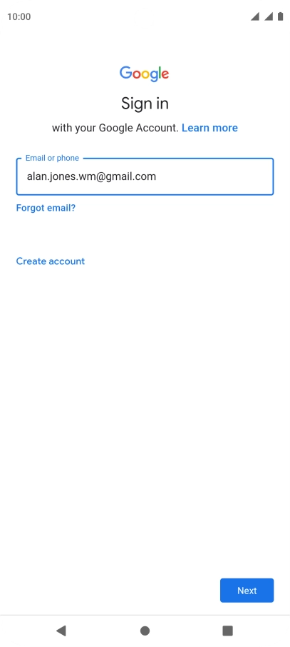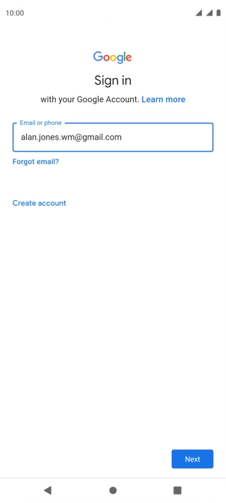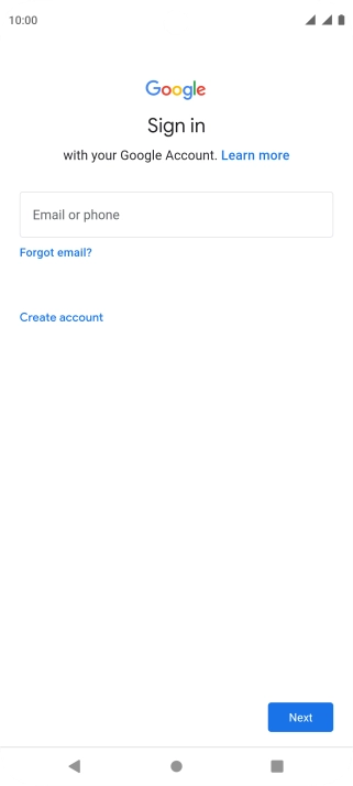 If you don't have a Google account, press Create account and follow the instructions on the screen to create an account.