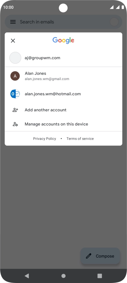 Press the required email account.