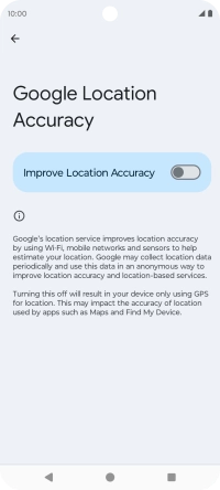 If you press the indicator next to "Improve Location Accuracy" to turn off the function, your phone can find your exact position using the GPS satellites but it may take longer as there is no access to supplementary information from the mobile network or nearby Wi-Fi networks.