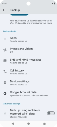 Press the indicator next to "Back up using mobile or metered Wi-Fi data" to turn the function on or off.