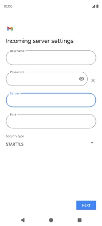 Press the field below "Server" and key in the name of your email provider's incoming server.