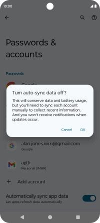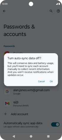 Press the indicator next to "Automatically sync app data" to turn the function on or off.