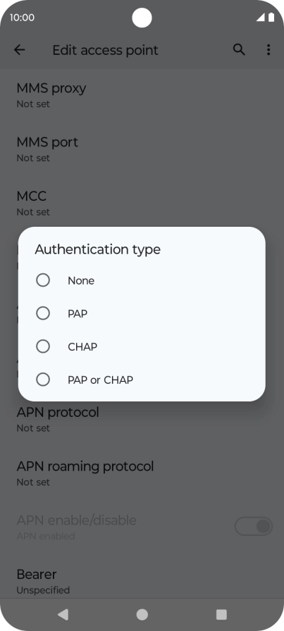 Enter APN type
