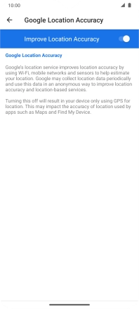 If you press the indicator next to "Improve Location Accuracy" to turn off the function, your phone can find your exact position using the GPS satellites but it may take longer as there is no access to supplementary information from the mobile network or nearby Wi-Fi networks.