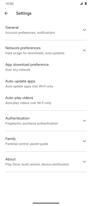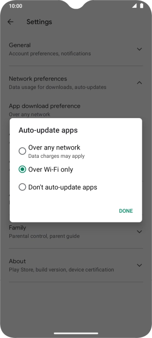 To turn on automatic update of apps using Wi-Fi, press Over Wi-Fi only.