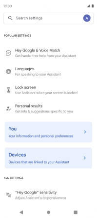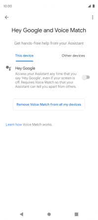 Press the indicator next to "Hey Google" and follow the instructions on the screen to turn the function on or off.
