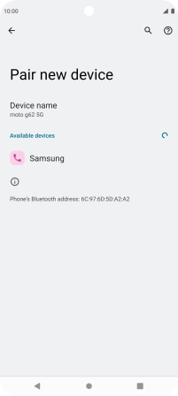 Press the required Bluetooth device and follow the instructions on the screen to pair the device with your phone.