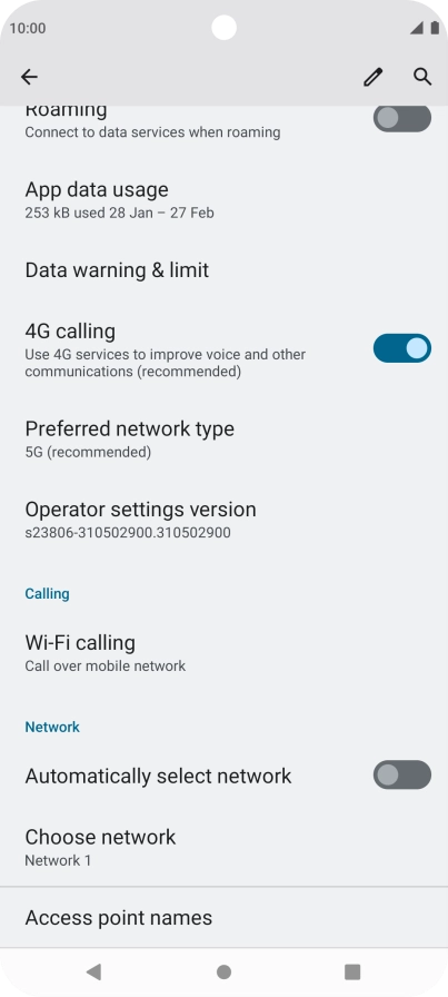 Press the indicator next to "Automatically select network" to turn on the function.