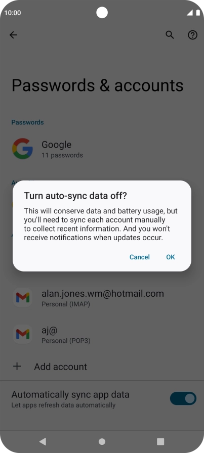Press the indicator next to "Automatically sync app data" to turn the function on or off.