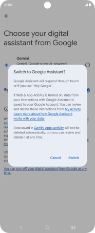Press Google Assistant features in Gemini and follow the instructions on the screen to turn use of Google Assistant functions on or off.