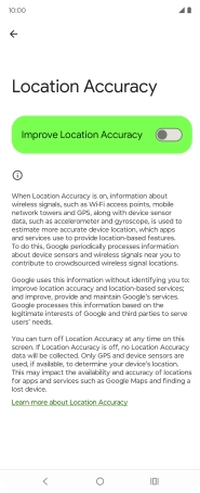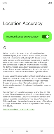 If you press the indicator next to "Improve Location Accuracy" to turn off the function, your phone can find your exact position using the GPS satellites but it may take longer as there is no access to supplementary information from the mobile network or nearby Wi-Fi networks.