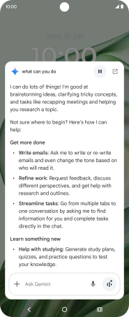 Say "What can you do?" to see more examples of voice control commands from Gemini.