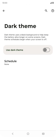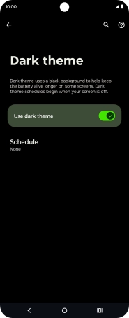 If you select Turns on at custom time, follow the instructions on the screen to select the required period of time for dark mode.