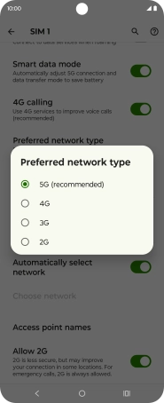 Press Preferred network type.