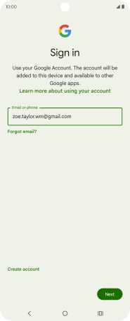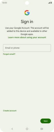If you don't have a Google account, press Create account and follow the instructions on the screen to create an account.