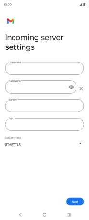 Press the field below "Server" and key in the name of your email provider's incoming server.