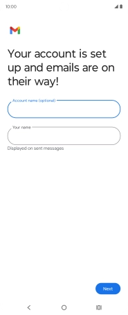 If this screen is displayed, you email account has been recognised and set up automatically. Follow the instructions on the screen to key in more information and finish setting up your phone.