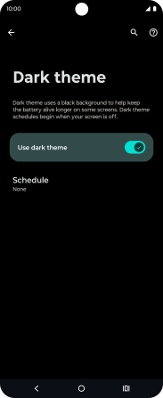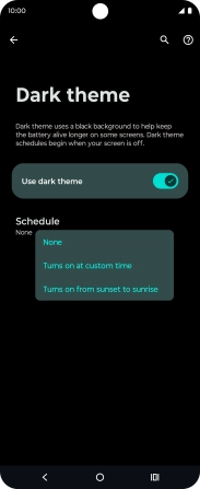 If you select Turns on at custom time, follow the instructions on the screen to select the required period of time for dark mode.