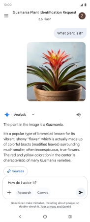 Press the camera icon and point the camera lens at the required subject or object to ask questions about it.