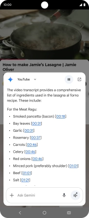 Using Gemini, you can ask questions about the content of a YouTube video.