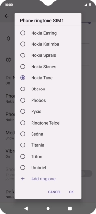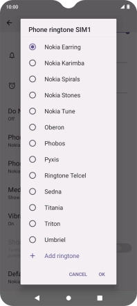To use a different ring tone than the default ones, press Add ringtone and follow the instructions on the screen to select the required ring tone.