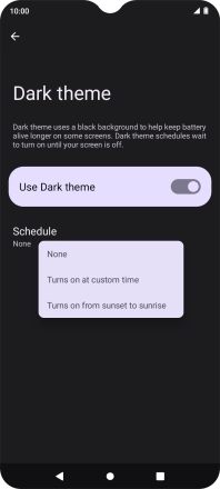 If you select Turns on at custom time, follow the instructions on the screen to select the required period of time for dark mode.