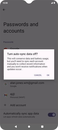 Press the indicator next to "Automatically sync app data" to turn the function on or off.