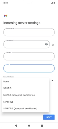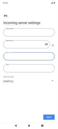 Press the field below "Server" and key in the name of your email provider's incoming server.