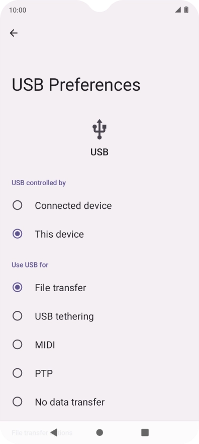 2 Choose setting for USB connection