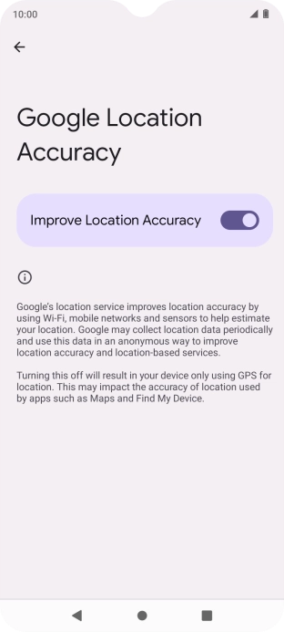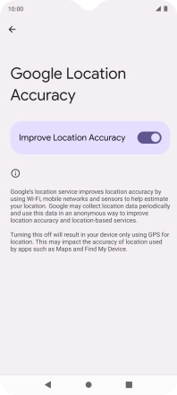 If you press the indicator next to "Improve Location Accuracy" to turn off the function, your phone can find your exact position using the GPS satellites but it may take longer as there is no access to supplementary information from the mobile network or nearby Wi-Fi networks.