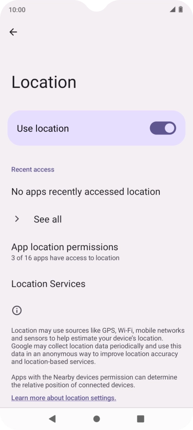 Press the indicator next to "Use location" to turn the function on or off.