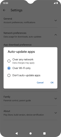 To turn on automatic update of apps using Wi-Fi, press Over Wi-Fi only.