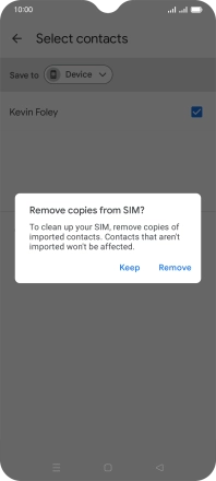 If you want to keep the existing contacts saved on your SIM, press Keep.