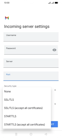 Press the field below "Server" and key in the name of your email provider's incoming server.