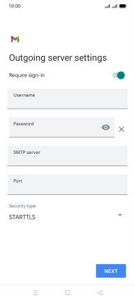 Press the field below "Username" and key in the username for your email the email provider's outgoing server.