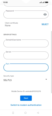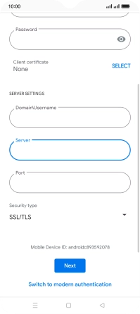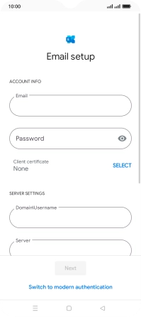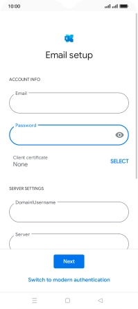 If this screen is displayed, your email account has been recognised and is being set up automatically. Follow the instructions on the screen to key in more information and finish setting up your phone.