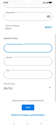Press the field below "Password" and key in the password for your email account.