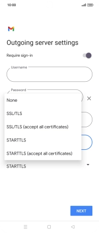 Press the field below "Username" and key in the username for your email the email provider's outgoing server.